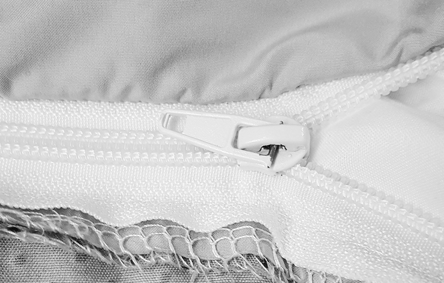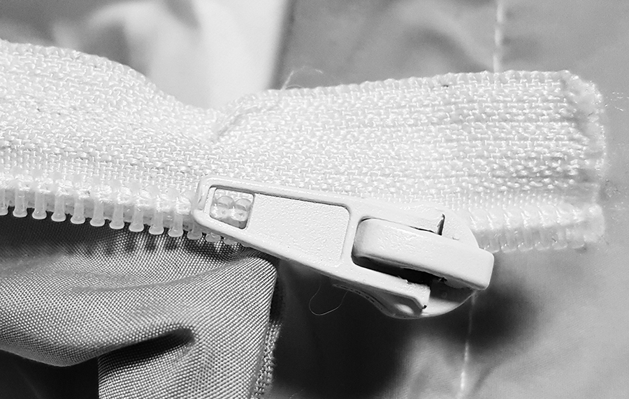 지퍼를 다시 넣어준 다음 막음쇠 고장으로 다시 슬라이더가 빠질 수 있으므로 지퍼 끝을 실과 바늘 등을 이용해 잘 꿰매줘야 한다.