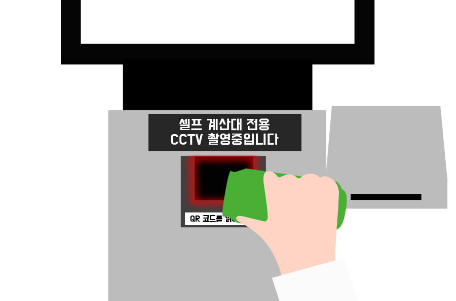 대부분 QR 코드가 상품에 있지만 없는 상품인 경우 손잡이로 안 찍힐 시 당황하지 말고 가운데 중앙 하단 리더기에 상품을 가져다 대도 찍히는 것을 확인할 수 있다.