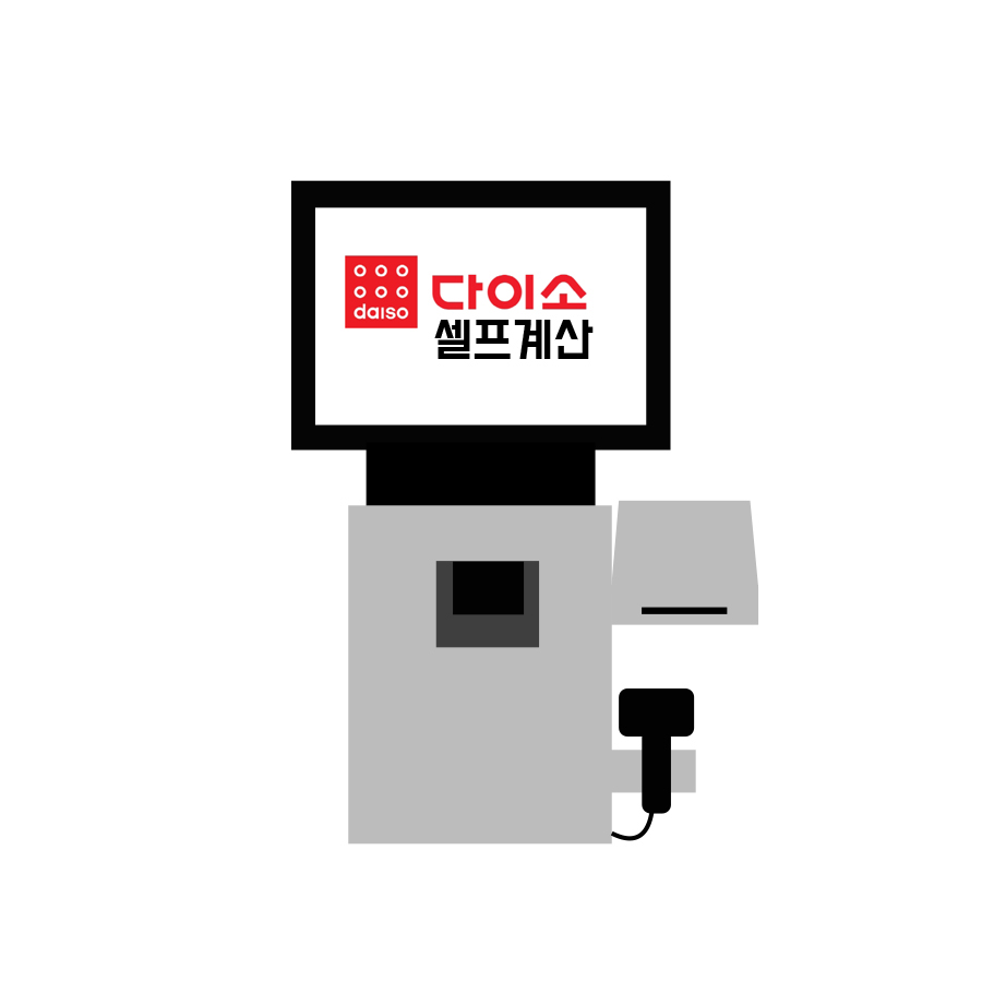 다이소 매장에서 직원 직접 계산해주는 경우도 있지만 무인계산대(키오스크)만 있을 경우 다이소 무인 셀프 계산 방법은 이렇다.