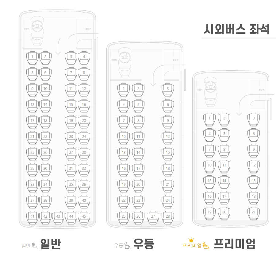 시외버스 일반, 우등, 프리미엄의 차이