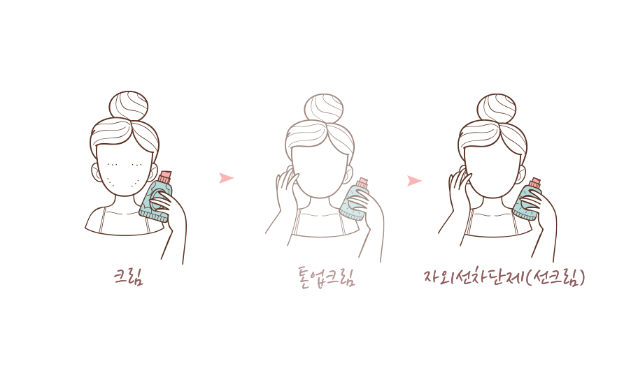 톤업 크림과 자외선 차단제는 기초 화장품을 다 바른 다음에 바른다.