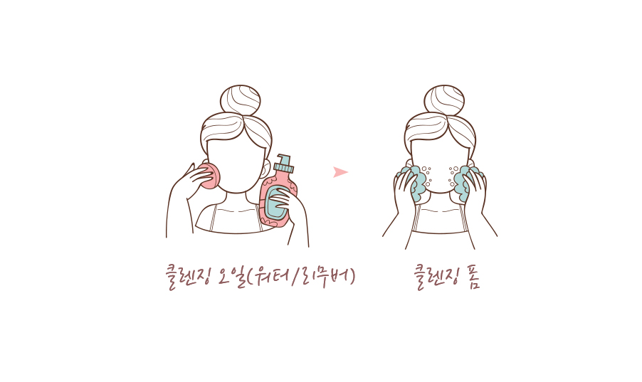 화장은 클렌징 워터 또는 클렌징 오일 사용 후 클렌징 폼까지 사용해 2차 세안을 해야 깨끗이 지워진다.