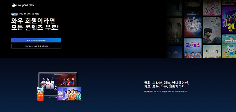 쿠팡플레이 - 와우 회원은 쿠플 시리즈, TV 프로그램, 영화, 스포츠 생중계 등 다양한 콘텐츠가 무