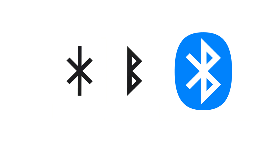 블루투스 명은 10세기 덴마크와 노르웨이를 통일한 바이킹 왕 Harald Blátǫnn 왕의 이름에서 유래했다. 블루베리를 좋아한 그의 치아가 파랬기 때문에 별명이 푸른 이빨(Bluetooth)이었다는 이야기도 있다. 블루투스의 로고는 하랄드 블라톤의 이니셜 H, B의 룬 문자를 합쳐 만들어졌다.
