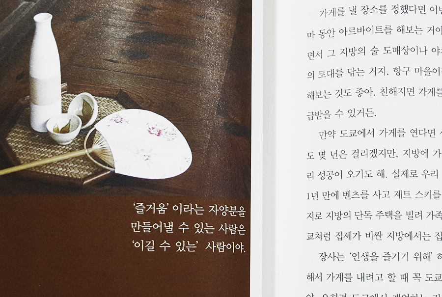 흔히 '손님의 입장이 되어서 생각하라'고들 하잖아. 하지만 '손님의 입장'에서 생각하기 때문에 더 잘 모르는 거야. '손님'이 아니라 '나'여야지. 어떤 가게라면 즐거울까? 그걸 생각하면 자연스럽게 좋은 가게를 만들 수 있게 된다고.