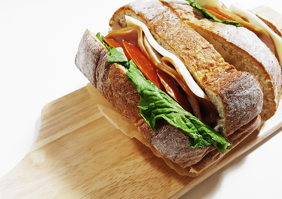 부드러운 통밀브레드에 스모크햄과 치즈, 신선한 야채가 어우러진 담백한 샌드위치