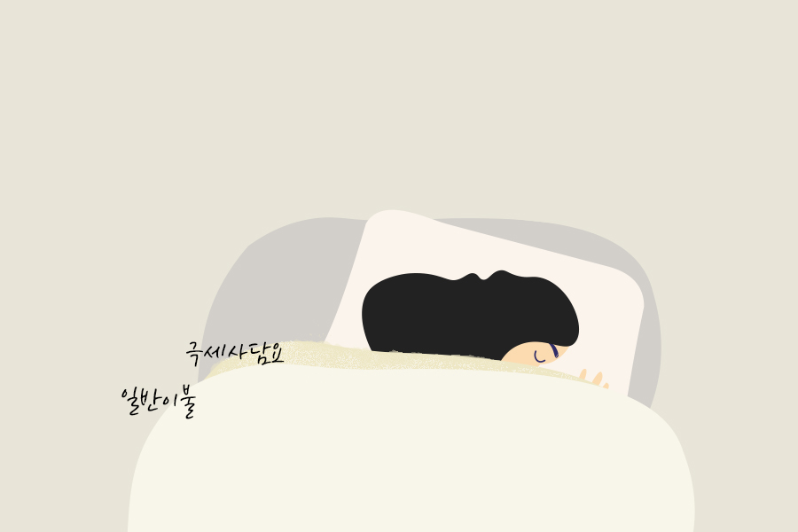 따라서 일반 사계절용 이불만 있을 때는 이불 안에 따로 극세사 담요를 덮어주면 비교적 한결 따뜻하게 잘 수 있다.