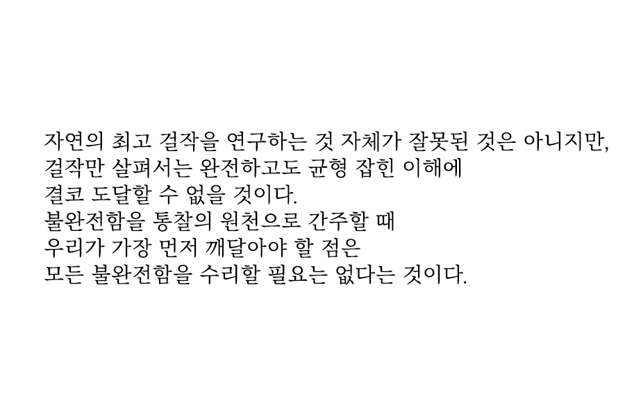 오히려 완벽하지 않기에 그렇게 불완전한 자연이, 사람이, 자신이 때로 좋은 것일 수도 있다.