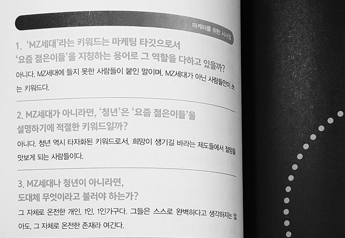 MZ라는 키워드의 출발은 서로 다른 세대를 이해하기 위한 탐구였을 것이다.