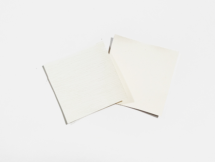 시공 : 접착력이 강해 한번 잘못 붙이면 떼어내기 쉽지 않고 탄성이 없어 코너의 마무리 및 시공이 어려울 수 있음.