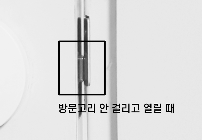 그럴 때는 벽의 방문 고리 부속품인 캐치와 캐치박스를 다시 걸리게 조립해 주면 방문이 다시 잘 닫히게 된다.