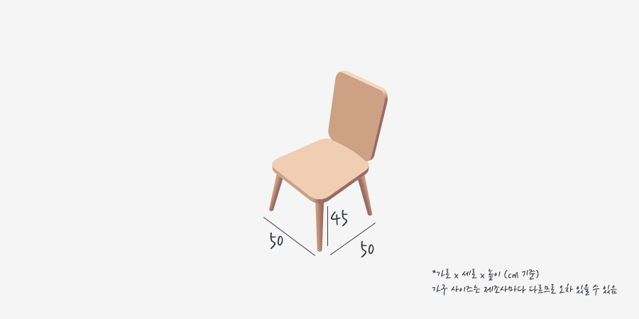 일반적으로 의자, 소파 등의 가구 높이는 약 40-50cm 정도의 높이로 제작되어진다.