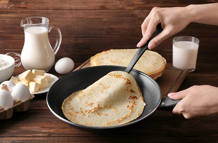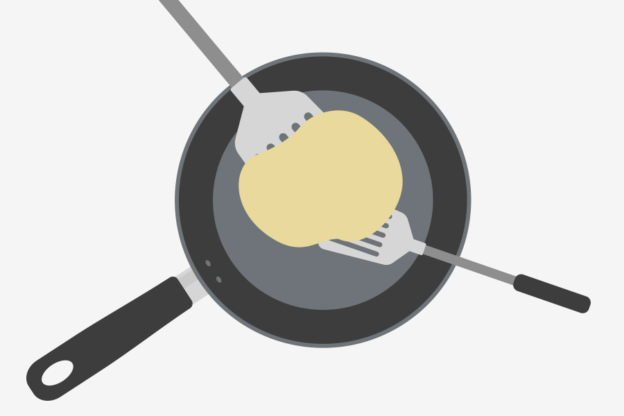 무엇보다 중요한 사실은 전, 팬 케이크, 달걀 프라이 등의 음식을 뒤집을 때는 한 면을 잘 익혀 팬에서 잘 떨어질 수 있게 해줘야 뒤집을 때도 실패가 없다는 것이다.