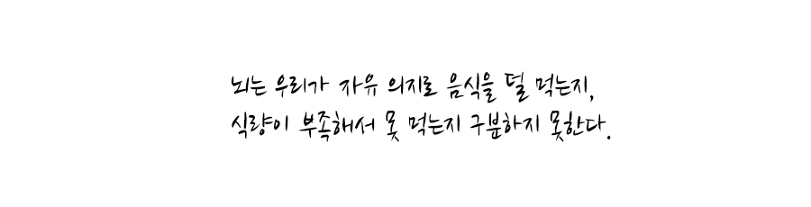 우리가 먹는 음식의 양은 의식적으로 조절되는 것처럼 보여도 사실 허기와 식욕은 뇌에서 무의식적으로 조절한다.