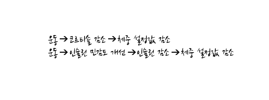 운동을 해서 몸무게가 감소하는 이유는 운동을 하면 체중 설정값이 낮아지기 때문이다. 설정값이 감소해야만 인체가 에너지를 내보내고 체중이 줄어든다.