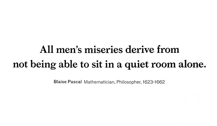 모든 인간의 불행은 조용한 방에 홀로 앉아 있을 수 없는 것에서 비롯된다.