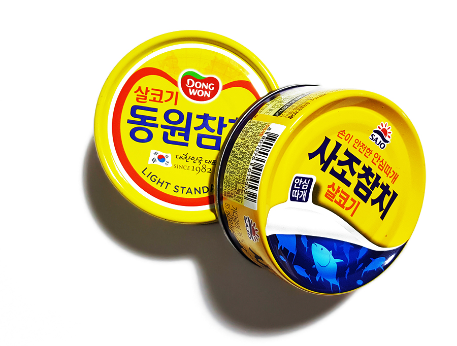 여러 브랜드의 참치들 중 동원과 사조를 비교해보면, 동원 참치는 뚜껑이 철로 되어있는 반면 사조 참치는 안심따개가 있어 통조림을 열 때 손 밸 염려가 적다는 것이 가장 다르다고 할 수 있다.
