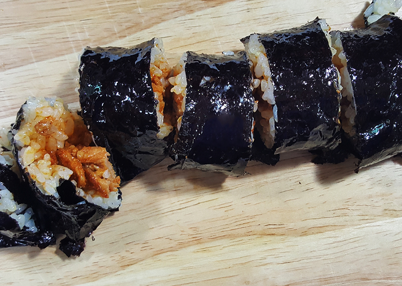 그래도 자르다가 속재료가 터져 나올 때는 김을 두 장 이용해 말아주면 덜 터지기도 한다.
