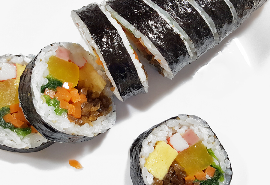 김밥 속재료에는 단무지, 우엉, 당근, 햄, 맛살, 달걀, 시금치 등이 들어가나 기호에 따라 얼마든지 다르게 넣는 것도 가능하다.