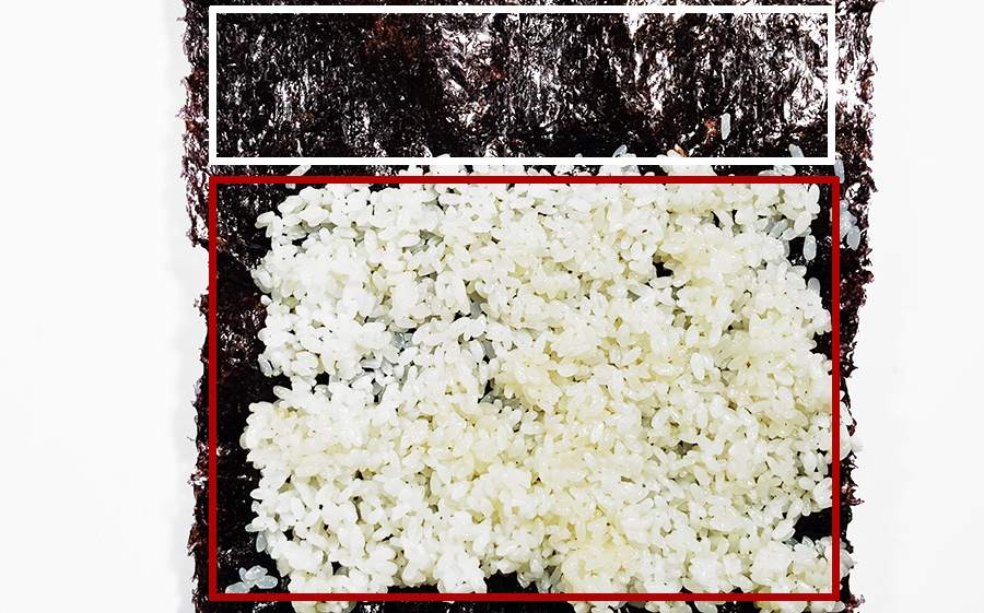 김밥을 말 때는 밥을 골고루 핀 다음 끝부분을 어느 정도 남긴다.