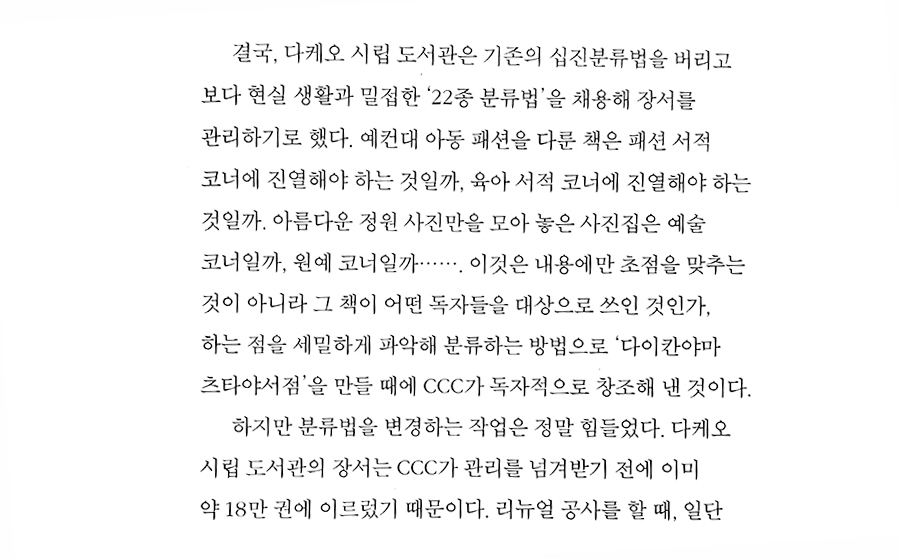 일본의 츠타야 매장을 운영하는 컬처 컨비니언스 클럽 (CCC)의 사장 겸 최고경영자가 집필한 책이다.