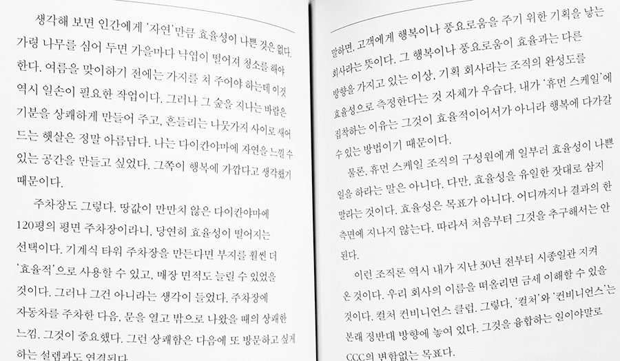 책의 내용은 주로 서점과 관련해 저자가 가진 디자인, 경영에 관한 철학을 엿볼 수 있게 되어있으며 그중 저자가 말한 디자인의 가치, 제안에 관한 글이 좋았다.
