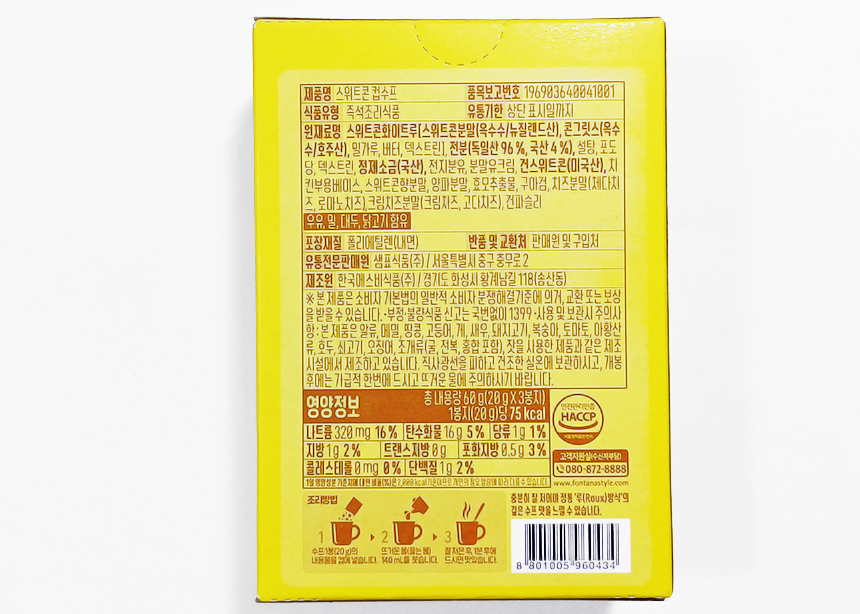 폰타나 그릴드 머쉬룸 크림 스프 다음으로 폰타나 제품인 폰타나 스위트콘 컵수프를 먹어보았다.