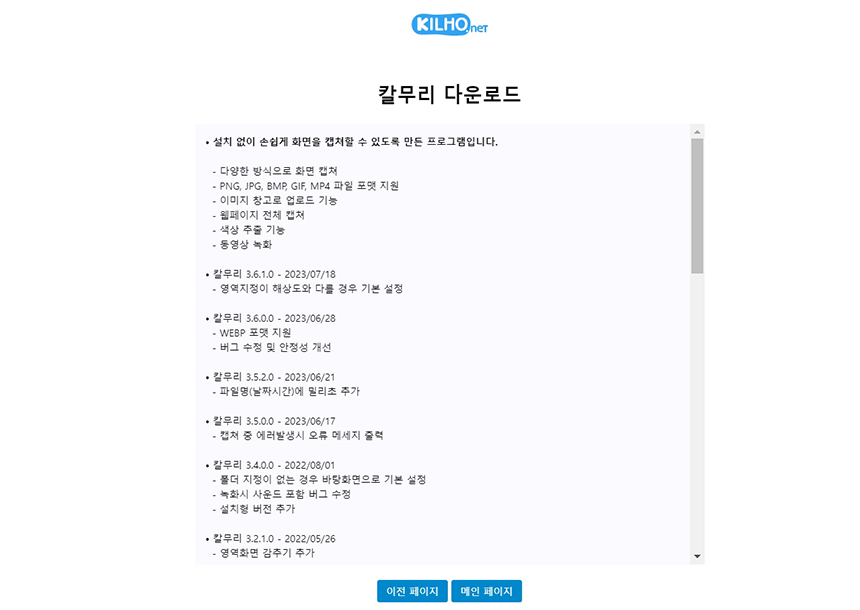 그중 캡처 프로그램 중 하나인 칼무리는 공식 다운로드 사이트 길호넷에서 다운로드 받을 수 있다.
