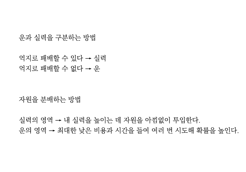 간절히 성공시키고 싶은 일의 모든 프로세스를 낱낱이 쪼개보고 운과 실력의 영역으로 분해해본다.