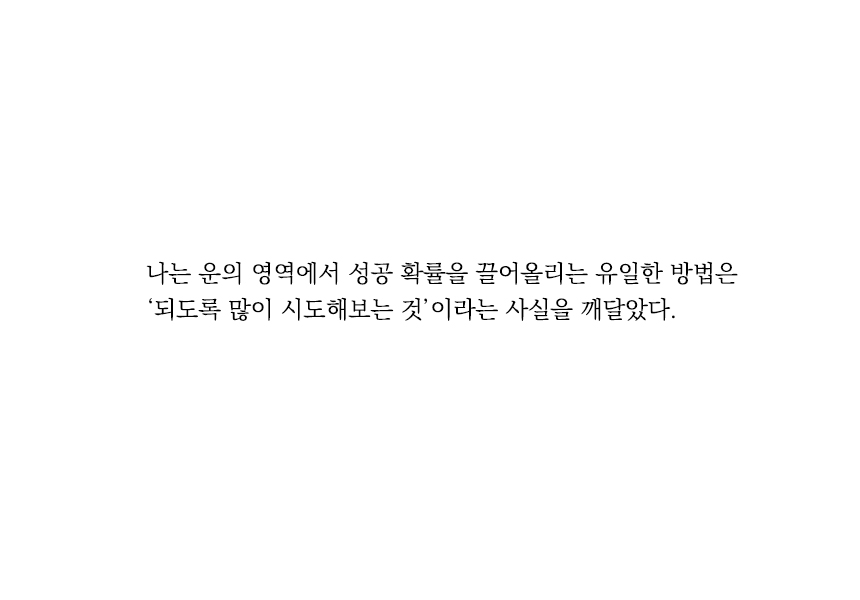 '운이 나쁘다'는 이유로 실패할 수도 있다. 그러나 과정이 옳았다면 비록 실패했어도 시도는 옳은 선택일 수 있다고 생각한다.