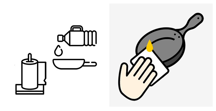 보통 프라이팬을 구입하면 키친타월에 기름을 묻혀 한번 닦아낸 후 사용한다.