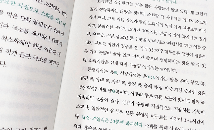 아무튼 읽다보면 내용은 한 가지 주장만 반복하는 듯 하지만 정말 채소와 과일을 내 몸과 더 가까이 해야겠다 싶을 정도로 좋았고, 얼핏 제목만 봐선 비건 또는 채소와 과일만 먹자고 강조한 책으로 오해될 수도 있는데 그런 책은 분명 아니다.