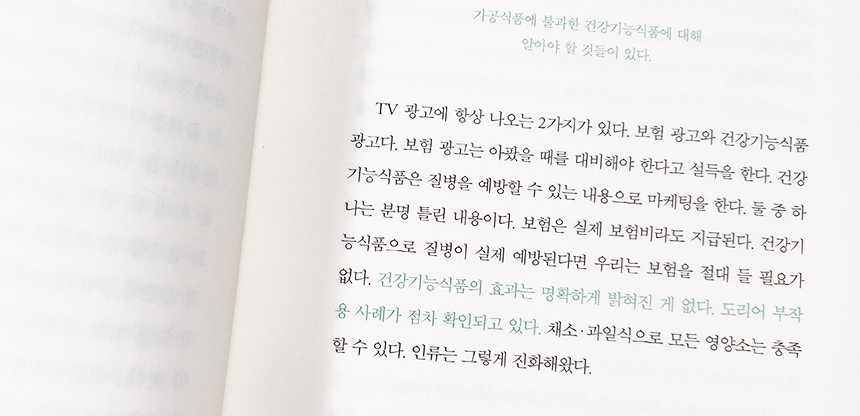 하지만 이미 다 일반 상식에 가깝게 느껴지는 이야기라서 사례나 과학적 근거에 기반한 내용들이 더 있었으면 좋았을 것 같다.