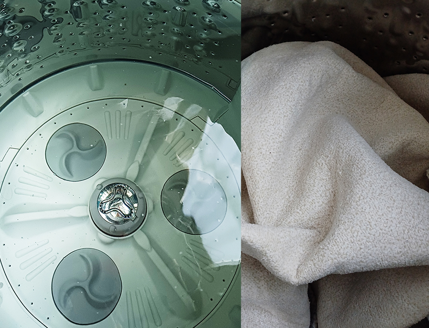 평소에는 세탁기를 청소하지 않아도 일반 면직물의 부드러운 섬유에는 먼지가 묻어나올 일이 없지만 수건, 카페트, 러그, 니트 등의 촘촘하고 뻑뻑하게 엉켜있는 섬유는 먼지를 끌어들이기 쉬워 묻어나온 먼지가 그대로 눈에 띄이게 된다.