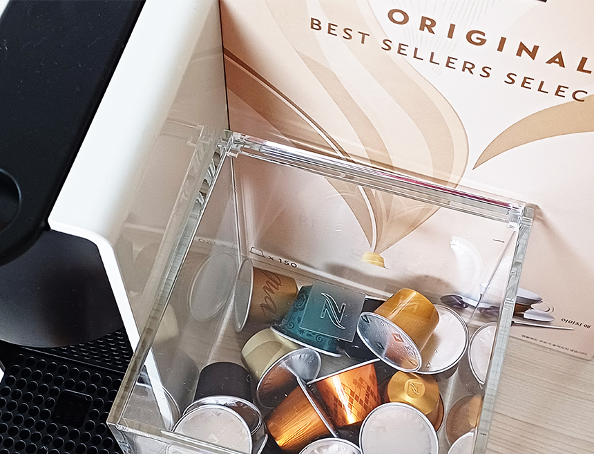 그래도 마침 필요했던 캡슐 보관함도 생기고, 캡슐커피도 맛있으니까 잘 마시게 될 것 같다.
