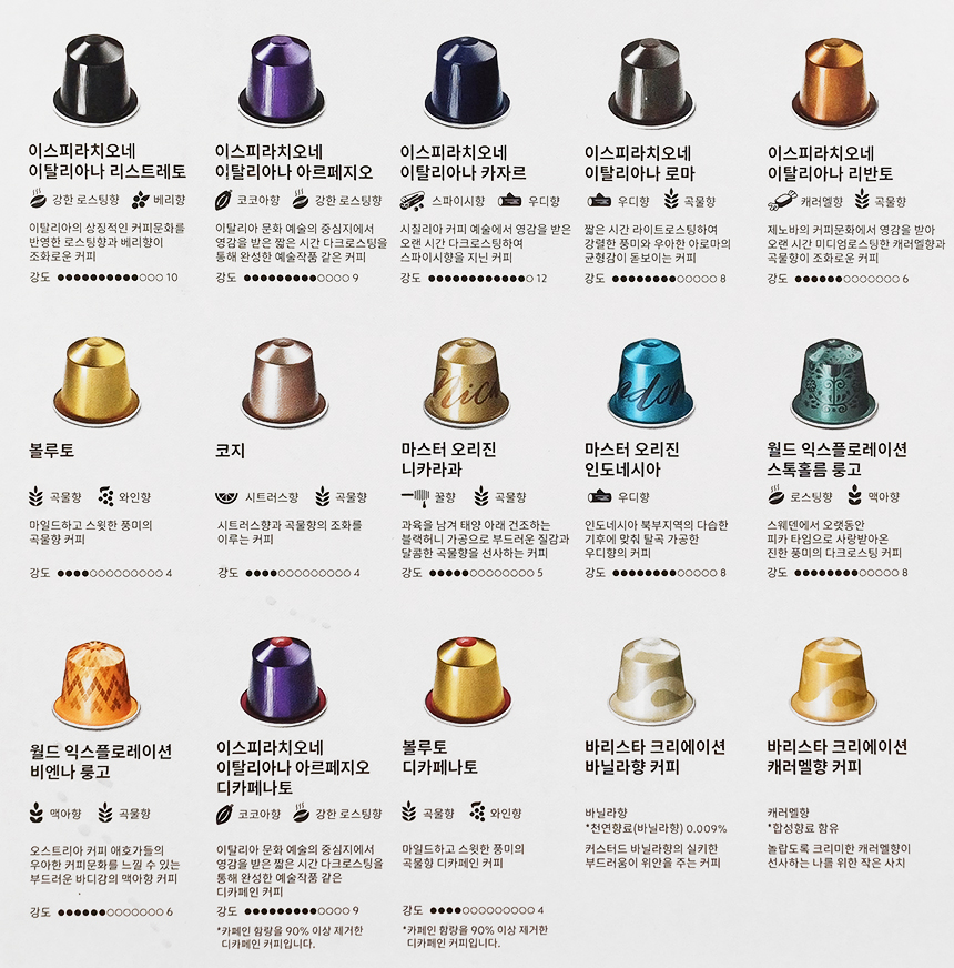 네스프레소 오리지널 베스트셀러 셀력션은 '네스프레소 오리지널 커피 중 가장 많은 사랑을 받고 있는 커피' 150개입으로 구성되어 있다.