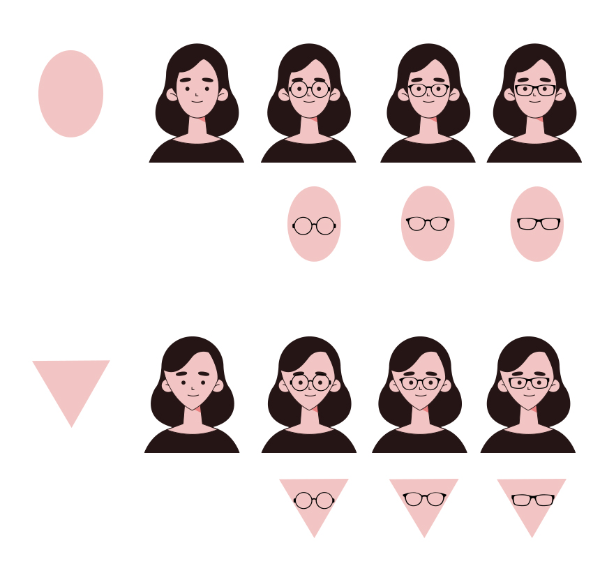사람의 실루엣을 만드는 체형처럼 사람의 얼굴형 또한 헤어스타일, 옷, 액세서리 등의 스타일링에 영향을 미치며 안경의 선택에 있어서도 중요한 사항이 된다.