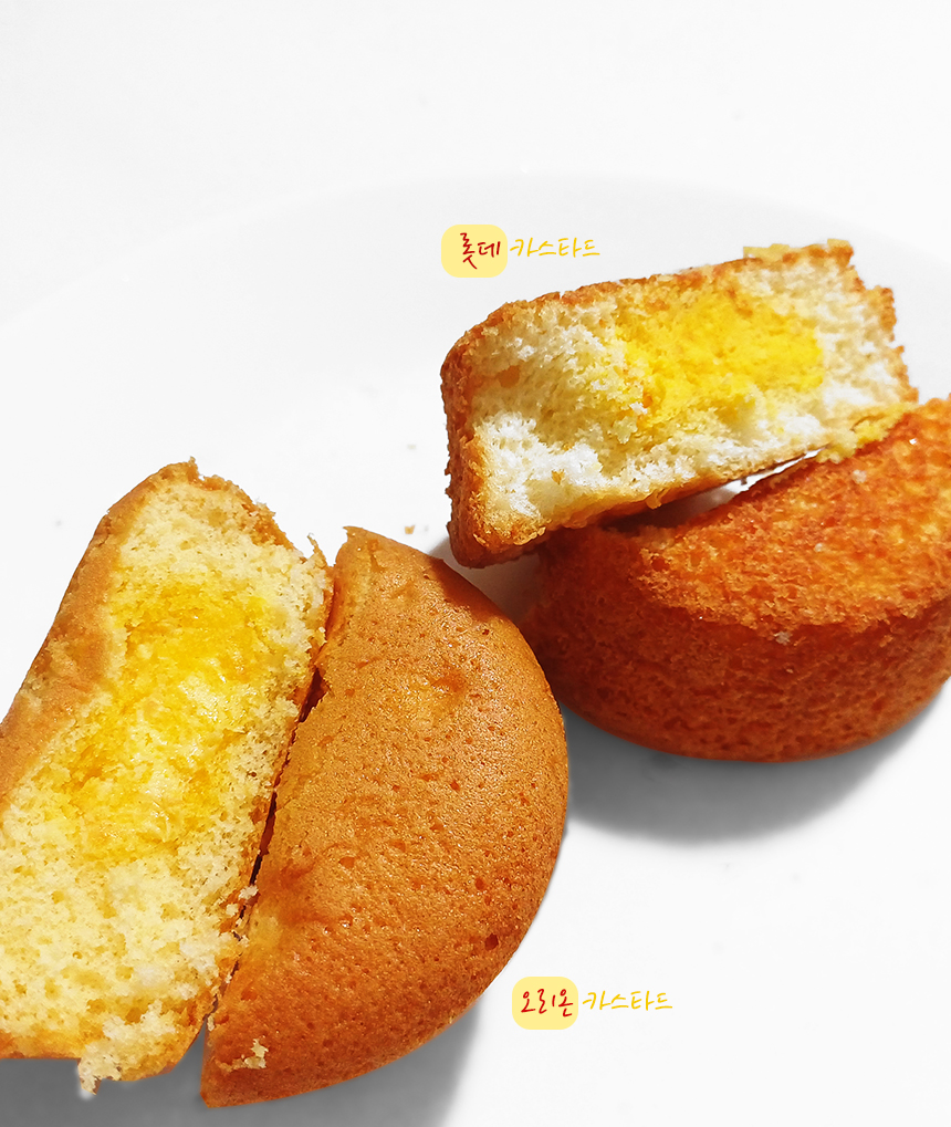 그런데 식품 유형으로 보면 분류는 오리온 카스타드는 빵류에 속하고, 롯데는 과자류에 속한다. 그래서 오리온 카스타드가 좀 더 부드럽긴 했었나 보다.