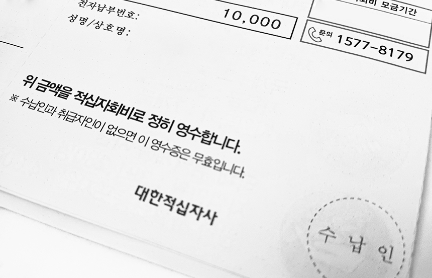 적십자회비는 자율적으로 참여하는 국민성금으로, 관련 법률에 따라 성명 (상호명) 및 주소를 이용하고 있습니다.