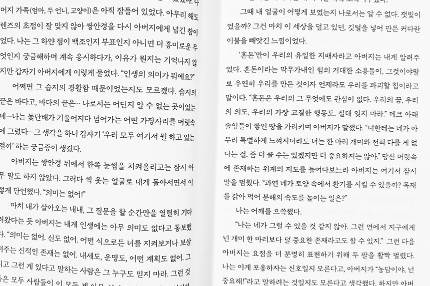 후에는 주인공은 모든 것은 중요하다는 나름의 결론에 다다르긴 하지만 개인적으로는 그 말의 첫인상이 나에겐 너무 컸다.