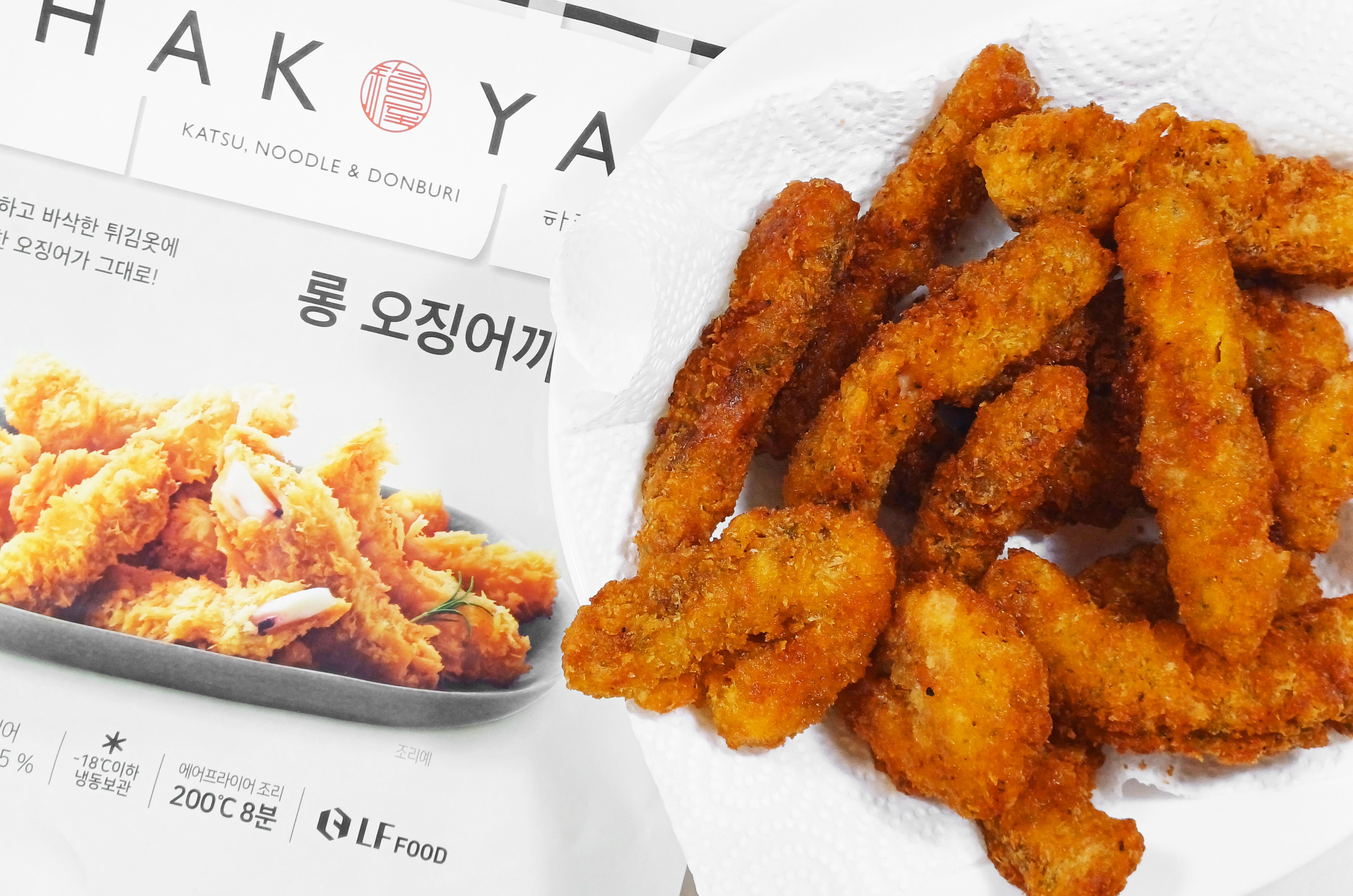 하코야 롱 오징어까스는 한 봉지에 320g이고 오징어 52.85%가 함유된 LF FOOD 브랜드다.
