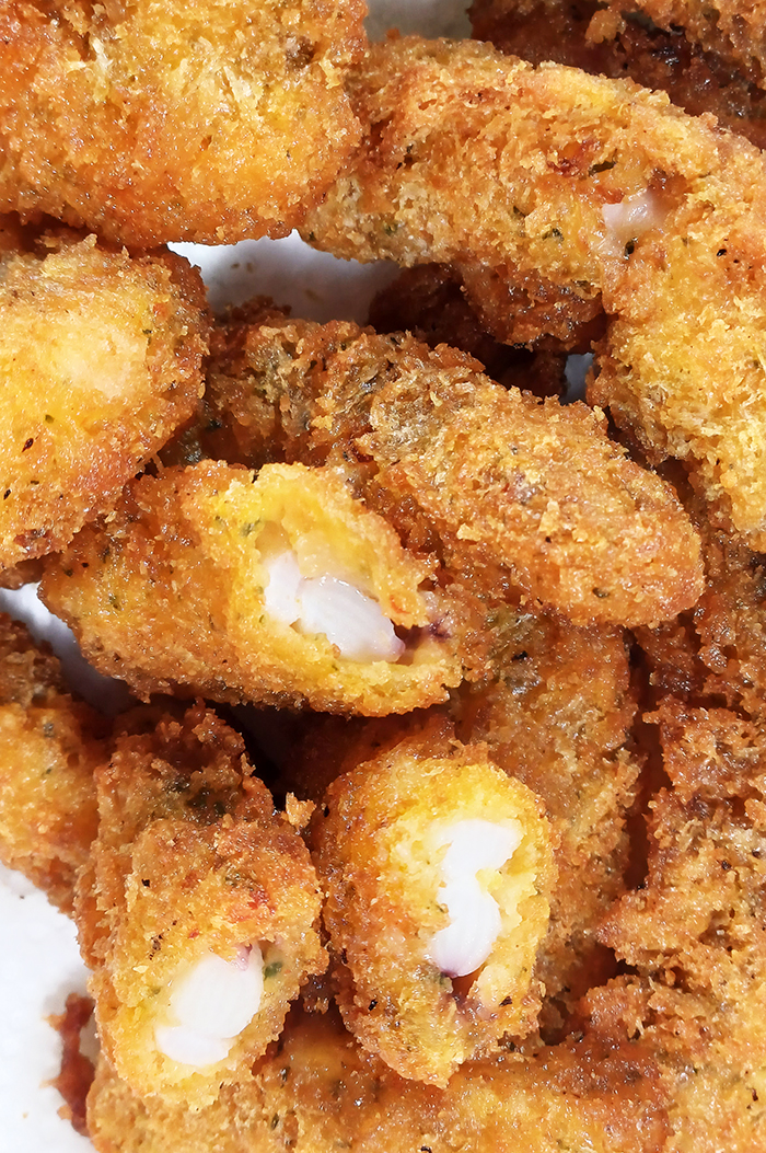 그러나 먹다보면 튀김옷이 그대로 벗겨지기도 하므로 마찬가지로 바삭하지 못한 그런 면에 약간 실망할 수도 있다.