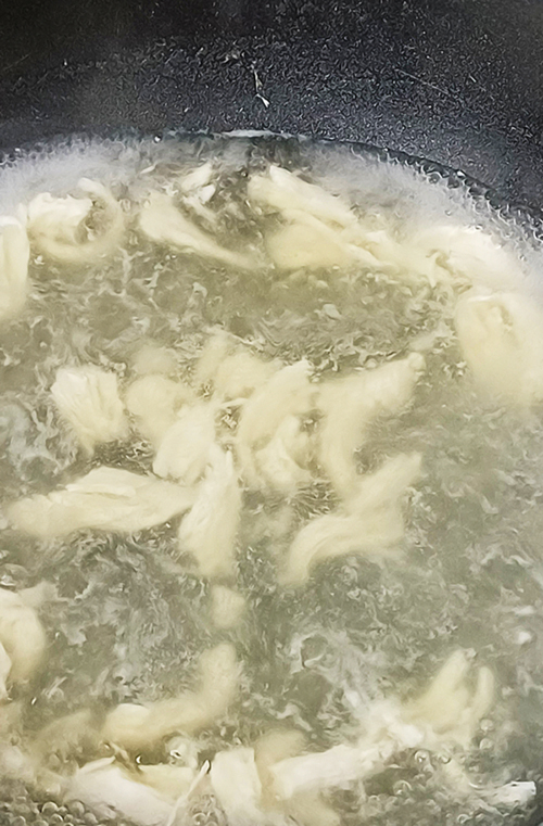 처음부터 닭국물 요리에 맛을 더 가미하기 위해 샀던 것이므로 닭 가슴살을 끓인 물에 치킨스톡을 조금 타서 먹어봤다.