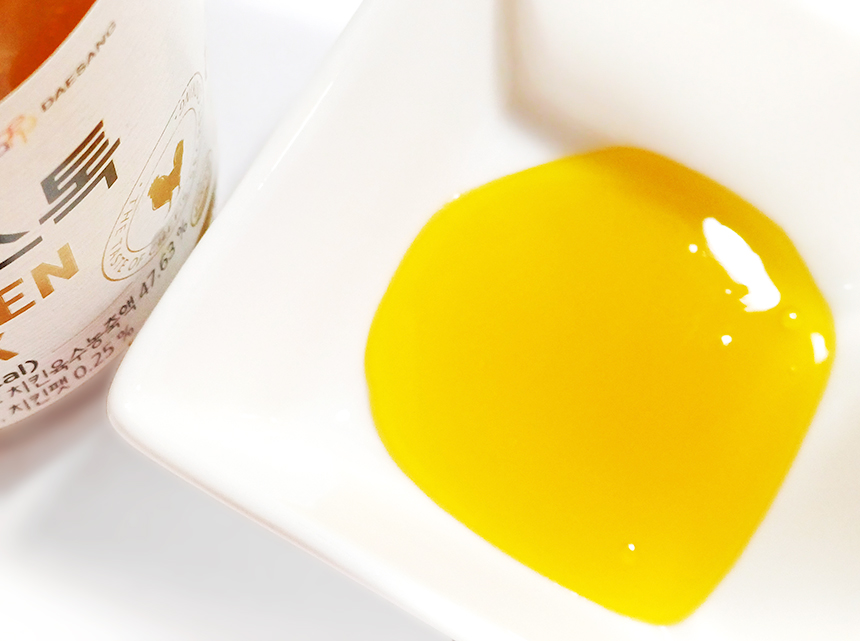 부어보면 액체형이라 노란빛으로 된 액상의 소스처럼 되어있고 물에 타면 연한 노란 빛깔을 띠었다.