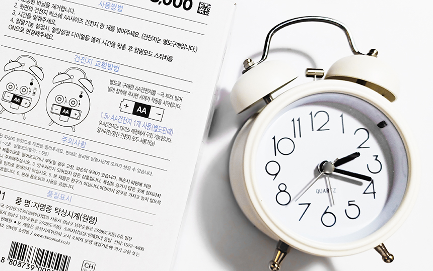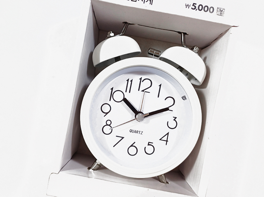 시끄럽게 울리는 알람 시계의 필요성을 느껴서 다이소에서 자명종 시계를 샀다.