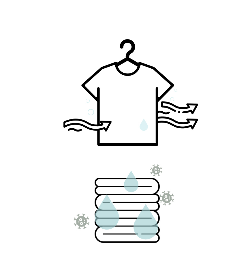 습기 자체에는 냄새가 없지만 습기가 높은 환경은 미생물의 번식을 유발하고 습기를 흡수한 옷의 냄새를 유발할 수 있다.