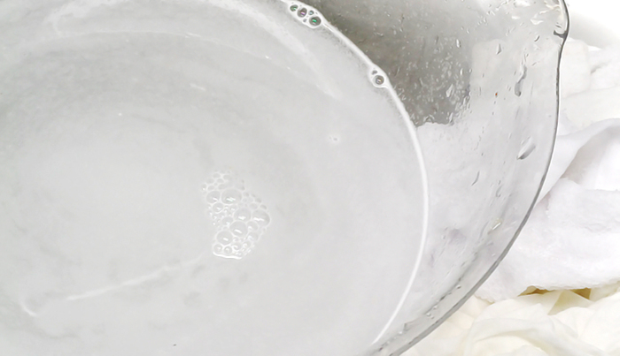 주방세제 : 일반적으로 사용할 수 있는 방법으로 행주를 뜨거운 물에 적신 후 주방 세제를 사용해 세척한다.