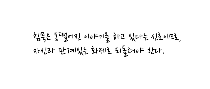 즉 할 말이 없는 이유는 그만큼 상대에게 내가 마음을 기울이지 않았기 때문일지도.