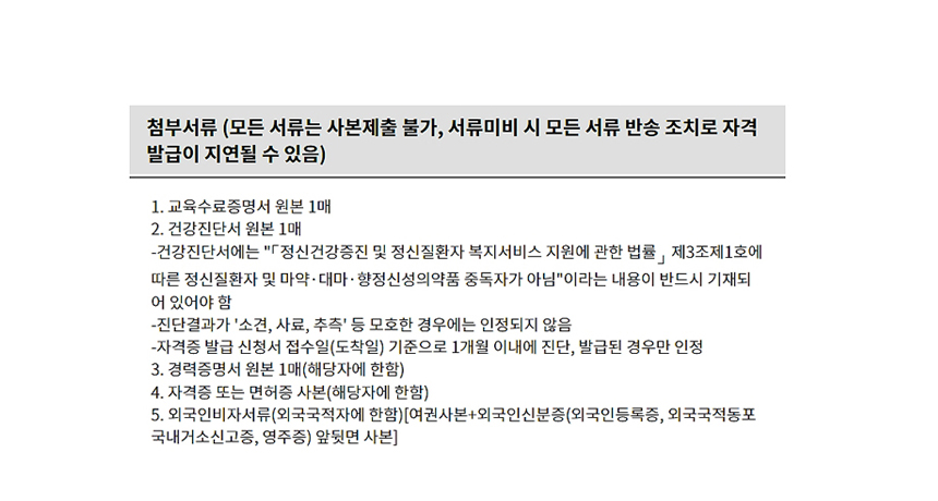 특히 다른 자격증 시험과 달리 교육수료증명서 내용 작성 시나 건강진단서 발급도 복잡한데다 서류를 보내고 자격증을 출력할 때 개인이 프린트하기 쉽지 않을 수 있으므로 전체적으로 생각하면 교육원(학원)에 맡기는 게 낫다.