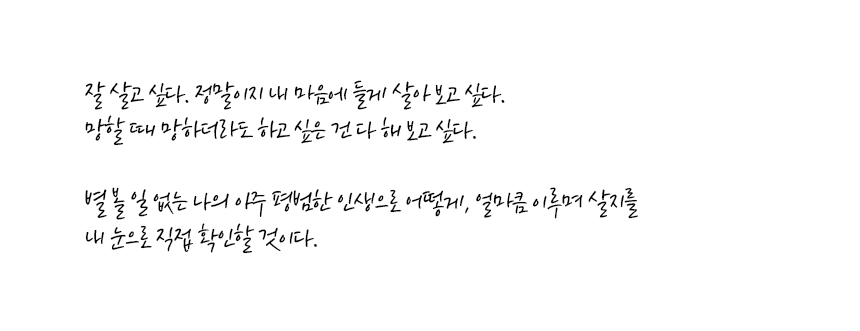 별 볼 일 없는 나의 아주 평범한 인생으로 어떻게, 얼마큼 이루며 살지를 내 눈으로 직접 확인할 것이다.